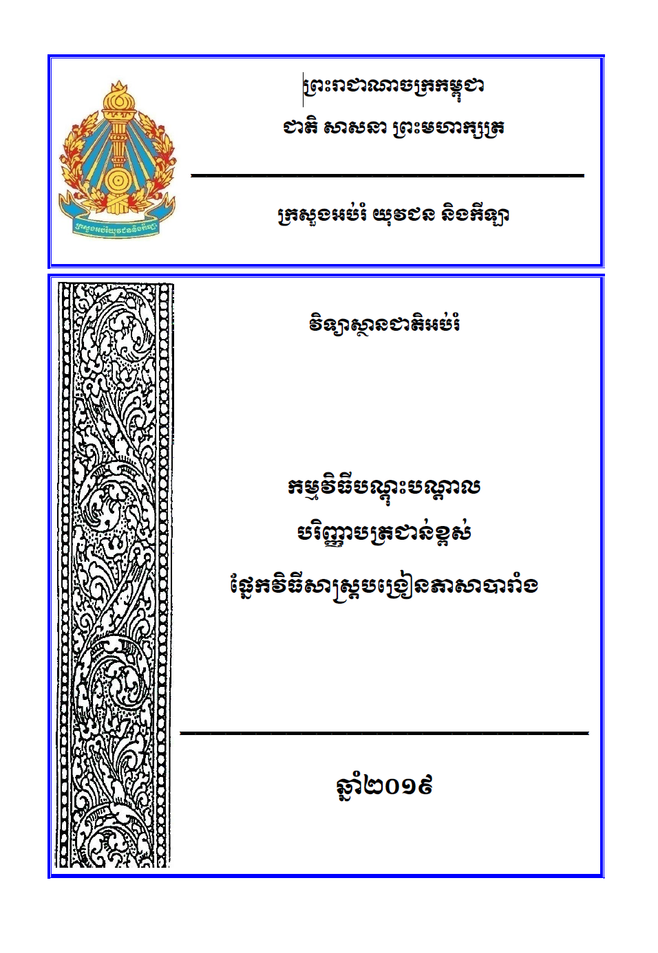 ក្របខណ្ឌកម្មវិធីបណ្តុះបណ្តាល គ្រូបង្រៀនកម្រិតឧត្តម (បរិញ្ញាបត្រ+២)