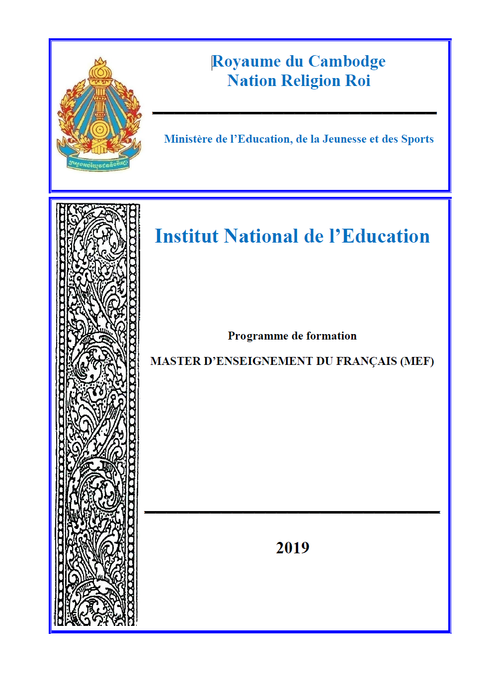 ក្របខ័ណ្ឌកម្មវិធីសិក្សា៖ ថ្នាក់បណ្ឌិតអប់រំ ជំនាញអភិវឌ្ឍកម្មវិធីសិក្សានិងវិធីសាស្ត្រ បង្រៀន