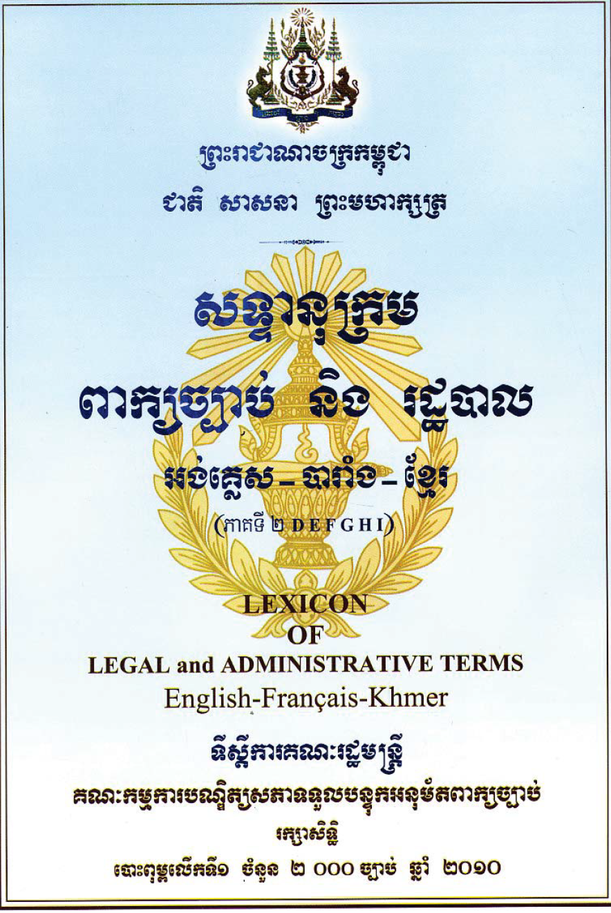 សទ្ទានុក្រមពាក្យច្បាប់ ខ្មែរ~អង់គ្លេស~បារាំង ផ្នែក រដ្ឋប្បវេណី និង នីតិវិធីរដ្ឋប្បវេណី