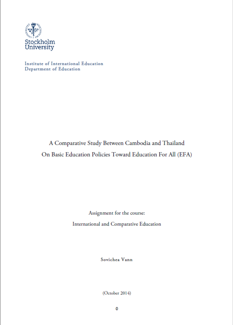 ទស្សនៈរបស់មាតាបិតាសិស្សចំពោះតួនាទីរបស់ខ្លួនក្នុងការចូលរួមចំណែកជួយការអប់រំនិងការសិក្សារបស់កូននៅមធ្យមសិក្សាទុតិយភូមិ(ករណីសិក្សានៅរាជធានីភ្នំពេញ)