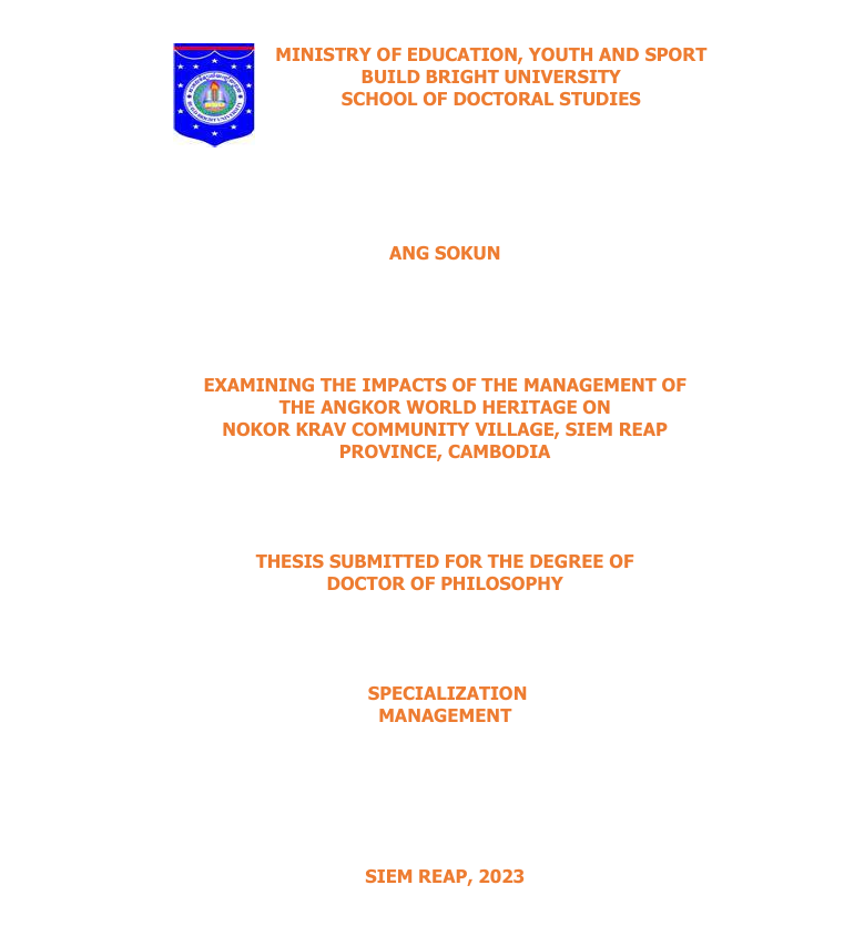 GOVERNANCE OF COMMUNE-SANGKAT FUND ON RURAL ROAD PROJECT EXECUTION: A CASE STUDY OF TWO COMMUNES OF PAILIN PROVINCE, CAMBODIA