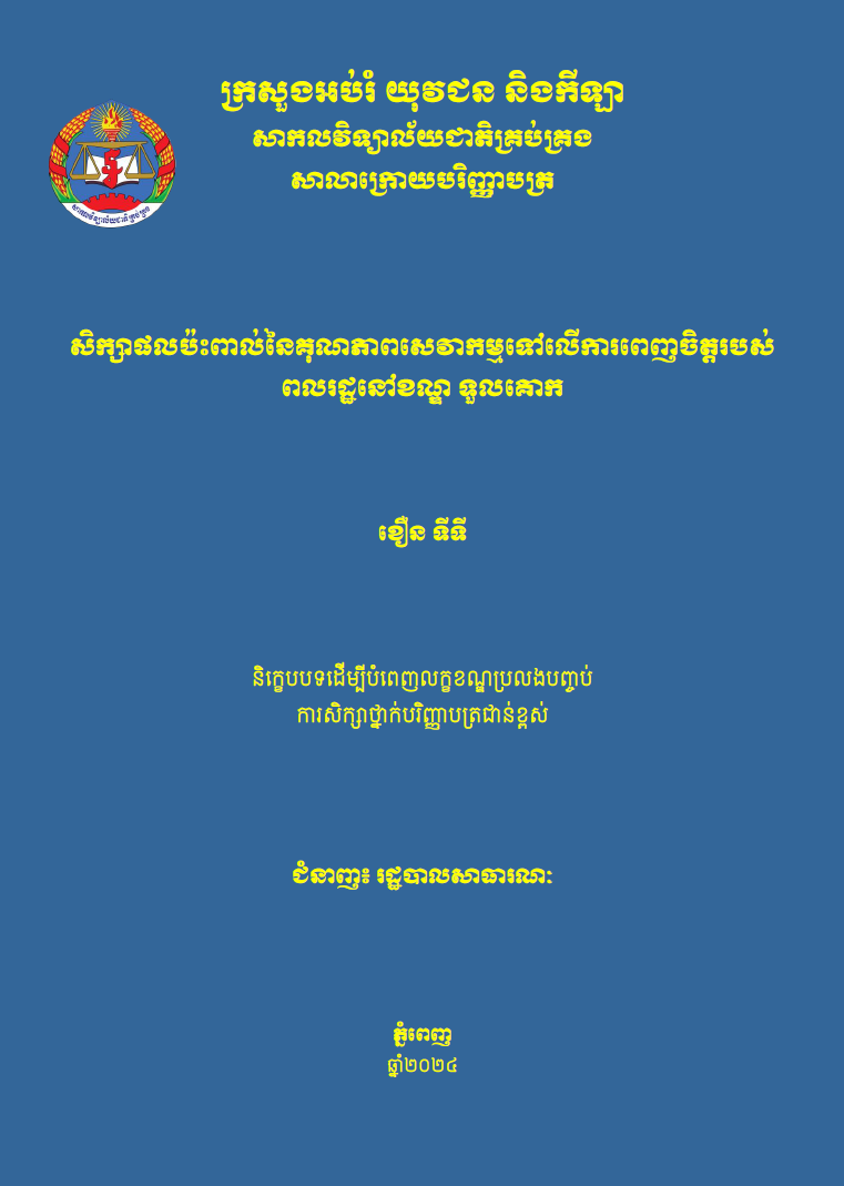 សិក្សាពីភាពពេញចិត្តរបស់ប្រជាពលរដ្ឋទៅលើការិយាល័យច្រកចេញចូលតែមួយក្នុងខណ្ឌ ស្សីកែវ រាជធានីភ្នំពេញ
