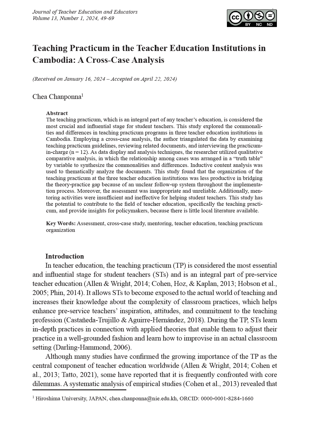Policy Review of Teacher Educators' Research Engagement in Cambodia: Focus on the Context of the National Institute of Education