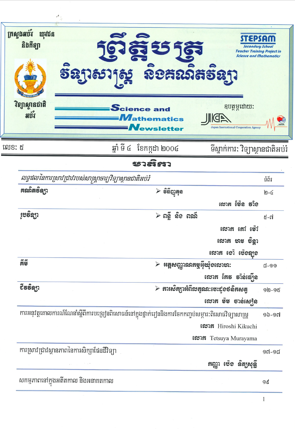 ព្រឹត្តិបត្រ វិទ្យាសាស្ត្រ និងគណិតវិទ្យា