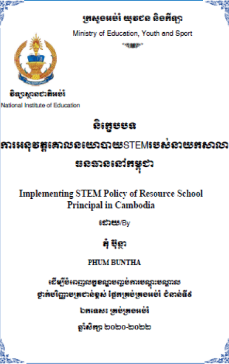 See Moreកត្តាជះឥទ្ធិពលលើអាកប្បកិរិយារបស់សិស្សចំពោះការអប់រំបច្កេកទេសនៅមធ្យមសិក្សាទុទិយភូមិ ក្នុងខេត្តស្វាយរៀង