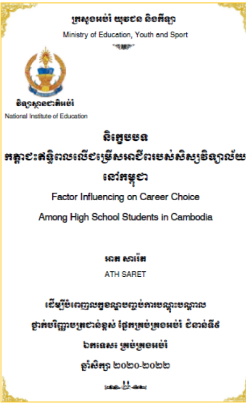 THE IMPACT OF THE COVID-19 PANDEMIC ON EDUCATION IN CAMBODIA