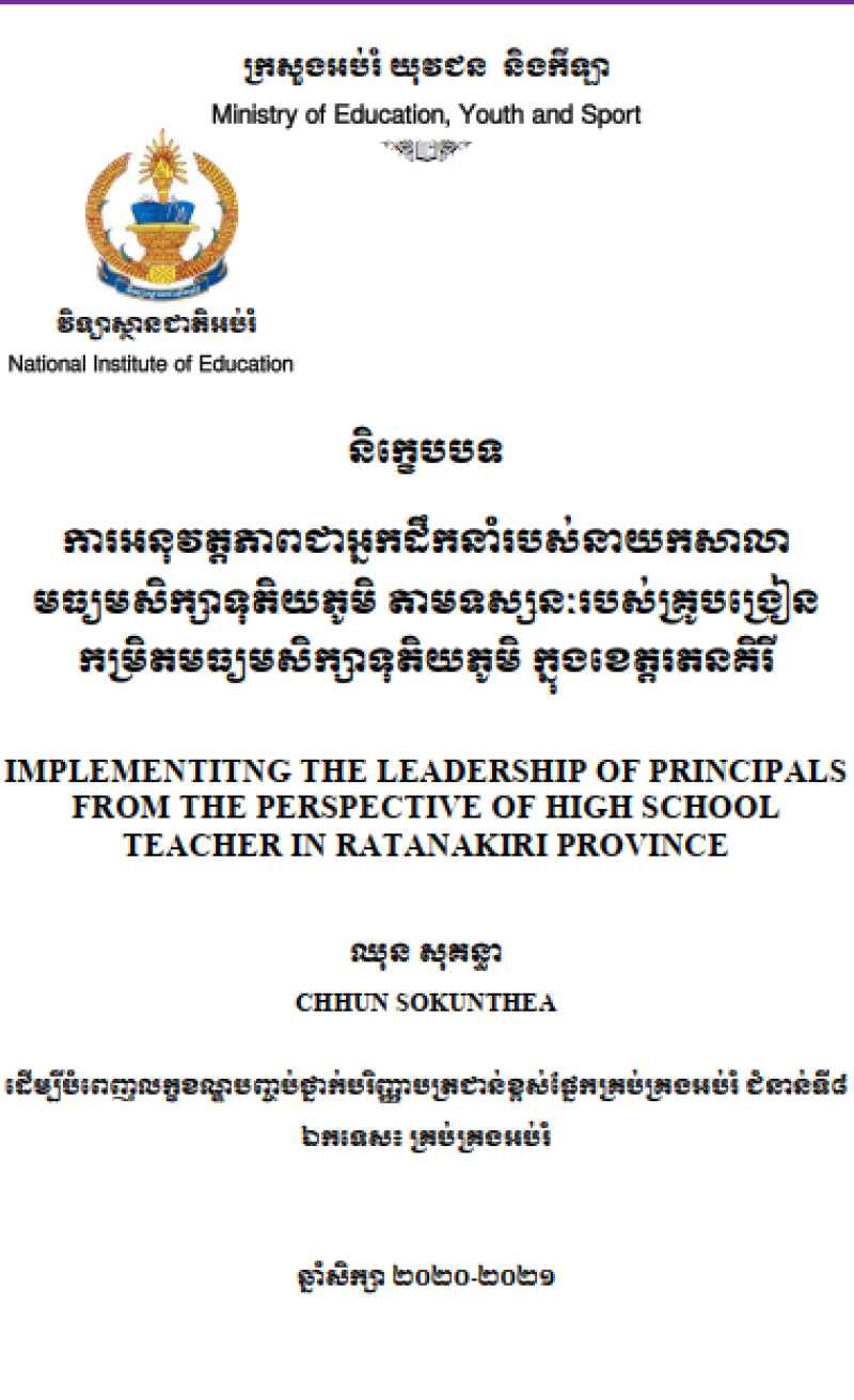 រង្វាយតម្លៃការអនុវត្តការគ្រប់គ្រងតាមសាលារៀន ករណីសិក្សានៅខេត្តស្វាយរៀង