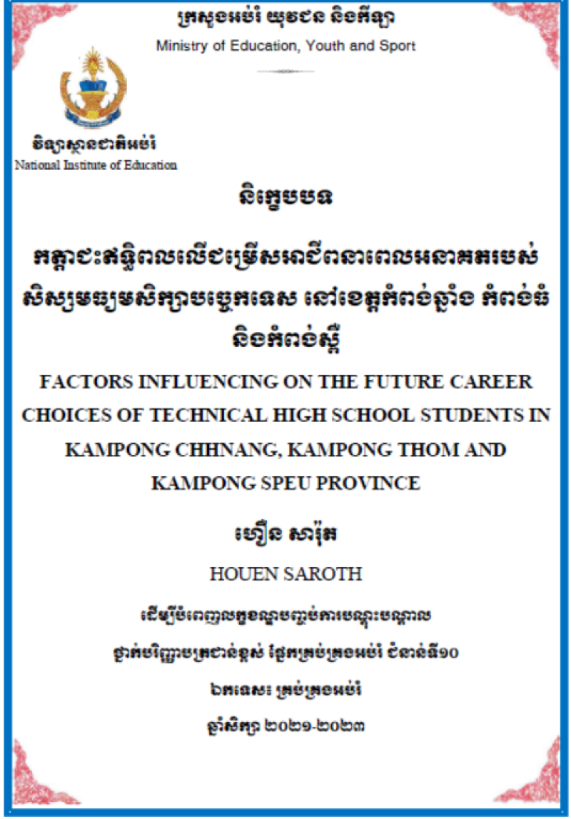 See Moreស្ថានភាពនៃការប្រតិបត្តិវិជ្ជាជីវៈគ្រូបង្រៀននៅអនុវិទ្យាល័យក្នុងខេត្តតាកែវ
