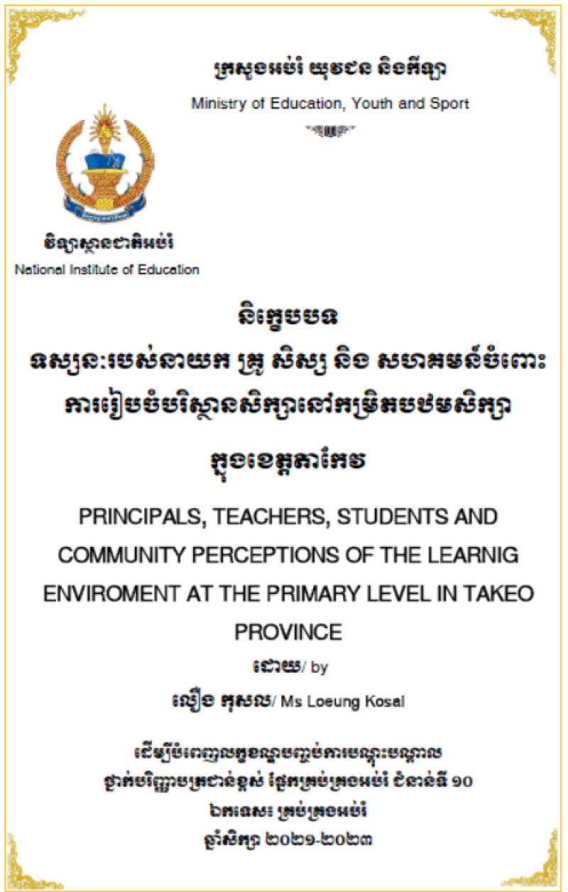 ស្ថានភាពនៃការអនុវត្តភាពជាអ្នកដឹកនាំ និងគ្រប់គ្រងសាលារៀននៅកម្រិតមធ្យមសិក្សាទុតិយភូមិ ករណីសិក្សាខេត្តស្វាយរៀង