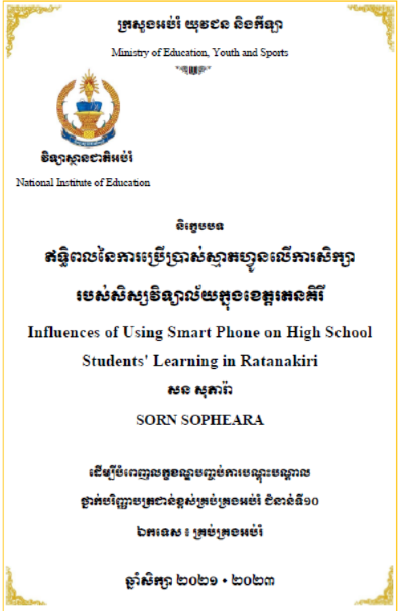 See Moreស្ថានភាពនៃការប្រើប្រាស់គ្រូបង្រៀននៅបឋមសិក្សា និងអនុវិទ្យាល័យក្នុងប្រទេសកម្ពុជា ករណីសិក្សា៖ខេត្តមណ្ឌលគិរី