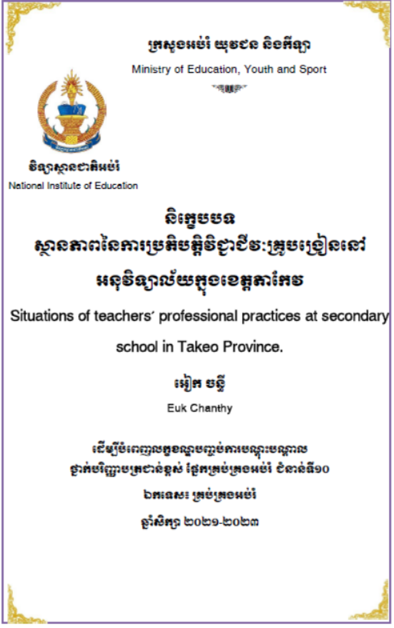 ទស្សនៈរបស់នាយកសាលាលើកំណែទម្រង់ការជ្រើសរើស និងការបណ្ដុះបណ្ដាលគ្រូមធ្យមសិក្សាទុតិយភូមិនៅកម្ពុជា៖ ករណីសិក្សា ខេត្តតាកៃវ