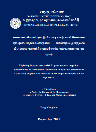 See Moreទស្សនៈរបស់គ្រូ ឧទ្ទេសលើការដឹកនាំនិងគ្រប់គ្រង ការបង្រៀននិងរៀនរបស់នាយកនៅគ្រឹះស្ថានបណ្តុះបណ្តាលគ្រូ