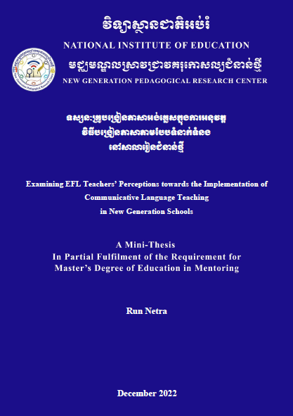 ទស្សនៈយល់ឃើញរបស់គ្រូទៅលើការអនុវត្តការសិក្សាតាមបែបធ្វើគម្រោង(PjBL) ចំពោះមុខវិជ្ជាវិទ្យាសាស្រ្ត៖ ករណីសិក្សាក្នុងសាលារៀនជំនាន់ថ្មីនៃវិទ្យាល័យព្រះស៊ីសុវត្តិ