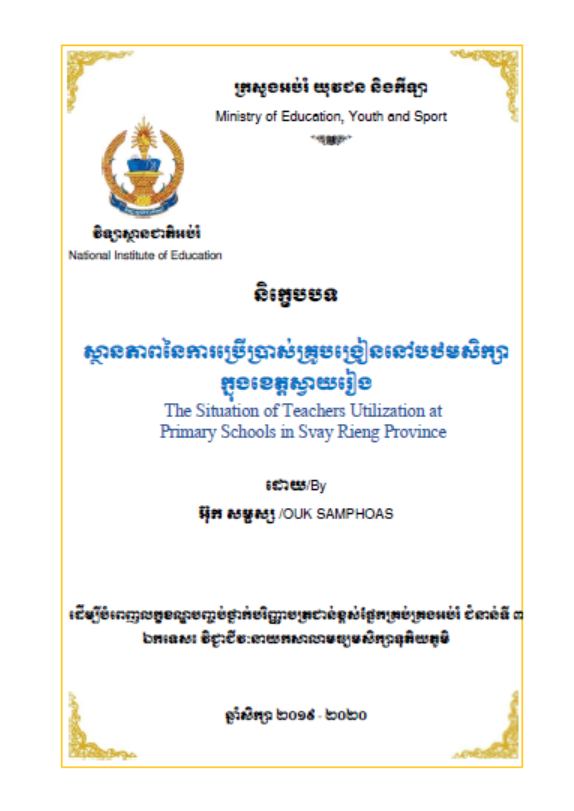 ស្ថានភាពនៃការអនុវត្តស្ដង់ដាវិជ្ជាជីៈវគ្រូបង្រៀននៅអនុវិទ្យាល័យក្នុងខេត្តស្វាយរៀង