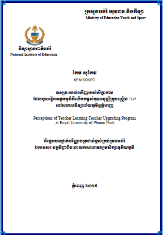 The Implementation of Curriculum in High Schools, Takeo Province Case Study: Takeo Province