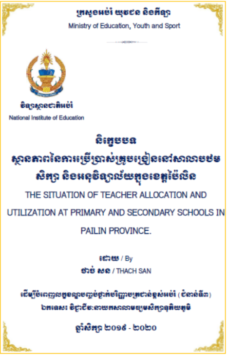 The Situation of Teacher Allocation and Utilization at Lower Secondary School in Oddarmeanchey Province