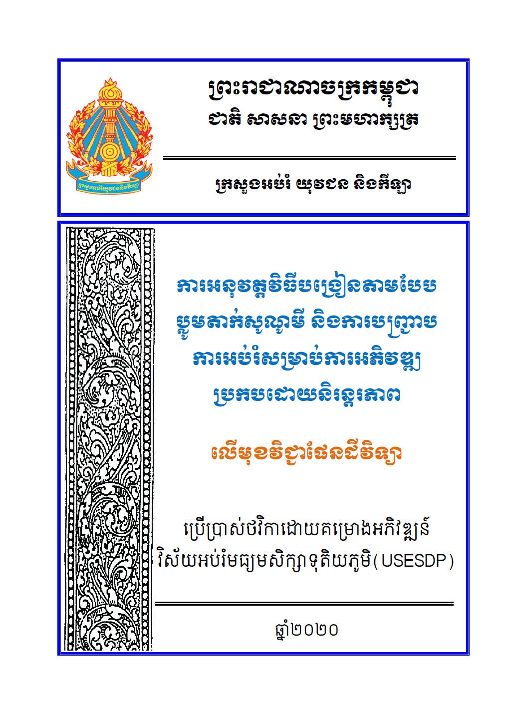 ការអនុវត្តវិធីសាស្ត្របង្រៀនតាមទ្រឹស្ដី Bloom's Taxonomy និងវិធីបញ្ជ្រាបការអប់រំប្រកបដោយនិរន្តរភាព (ESD) លើមុខវិជ្ជា គណិតដីវិទ្យា