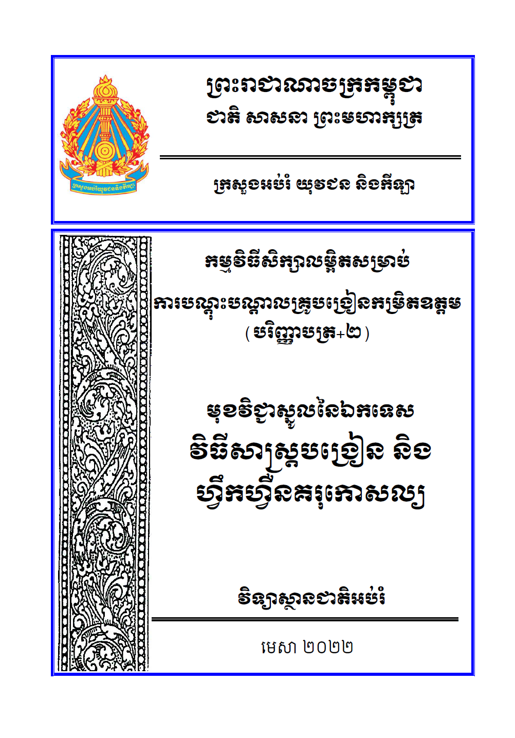 កម្មវិធីសិក្សាលម្អិតសម្រាប់ ការបណ្តុះបណ្តាលគ្រូបង្រៀនកម្រិតឧត្តម (បរិញ្ញាបត្រ+២) មុខវិជ្ជារួមនៃឯកទេស