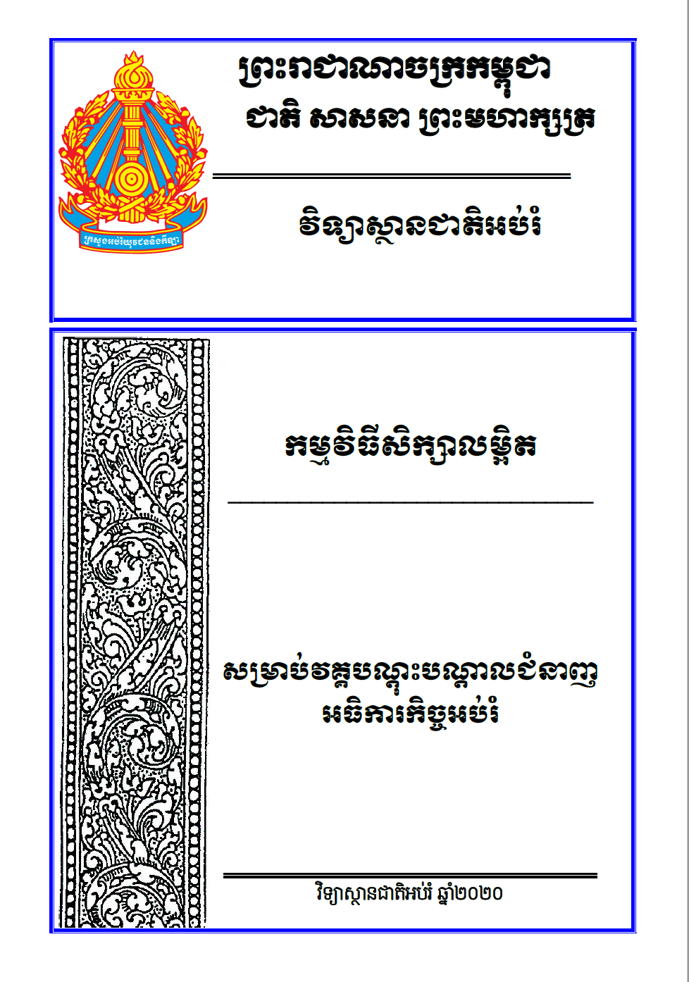 See Moreកម្មវិធីសិក្សាលម្អិតសម្រាប់ ការបណ្តុះបណ្តាលគ្រូបង្រៀនកម្រិតឧត្តម (បរិញ្ញាបត្រ+២) មុខវិជ្ជាស្នូលនៃឯកទេស វិធីសាស្ត្របង្រៀន និង ហ្វឹកហ្វឺនគរុកោសល្យ