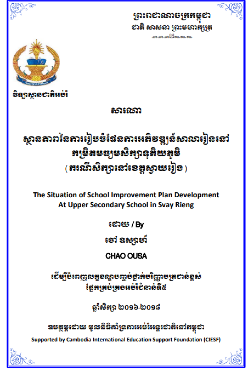 ទស្សនៈរបស់ភាគីពាក់ព័ន្ធលើសាលាមធ្យមសិក្សាទុតិយភូមិដែលមានចំនួនសិស្សកាន់តែថយចុះនៅក្នុងរាជធានីភ្ឋំពេញ