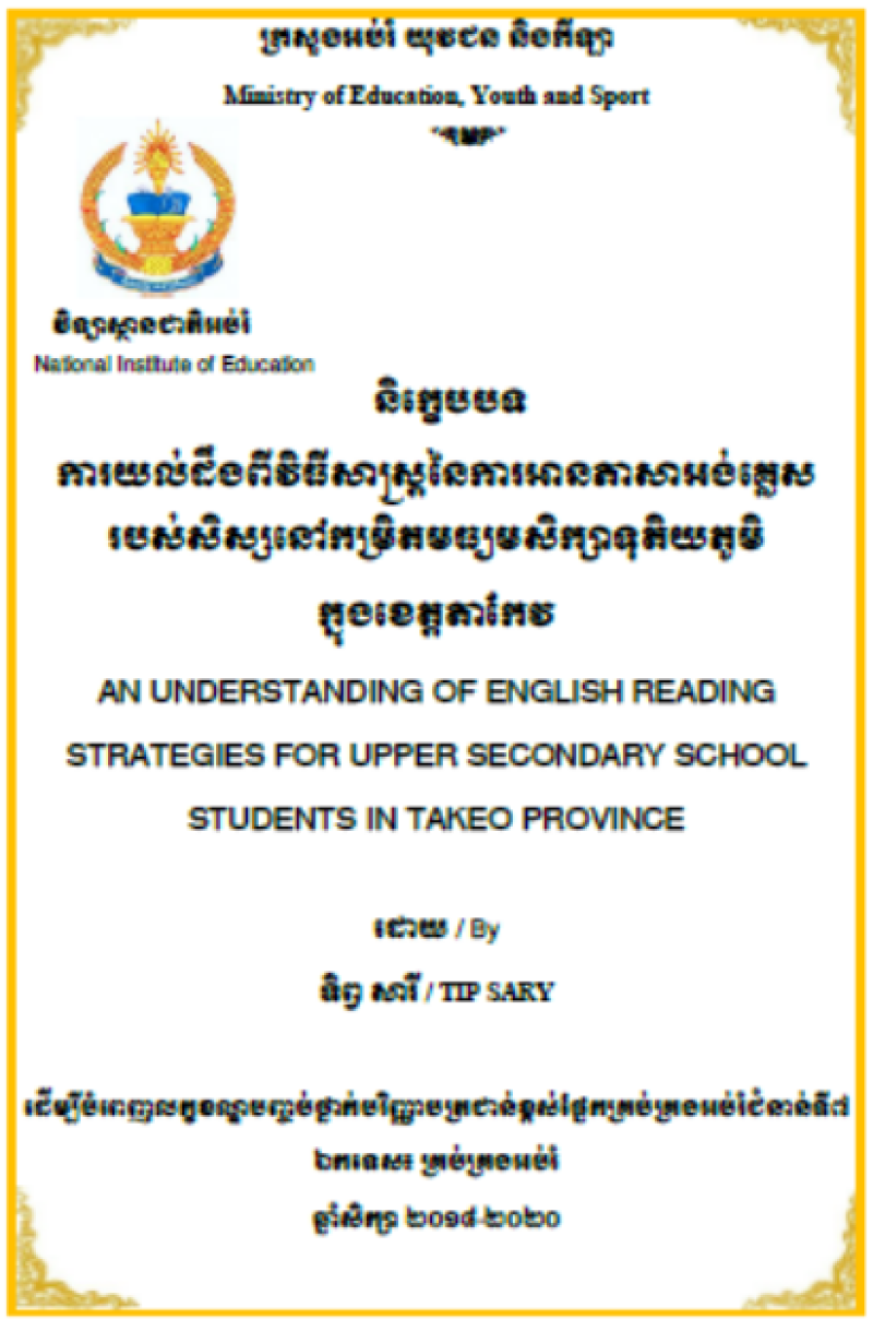 យុទ្ធសាស្ត្រក្នុងការៀនបំណិននិយាយភាសាអង់គ្លេសរបស់សិស្សកម្ពុជានៅកម្រិតមធ្យមសិក្សាទុតិយភូមិ ក្នុងខេត្តកំពង់ចាម