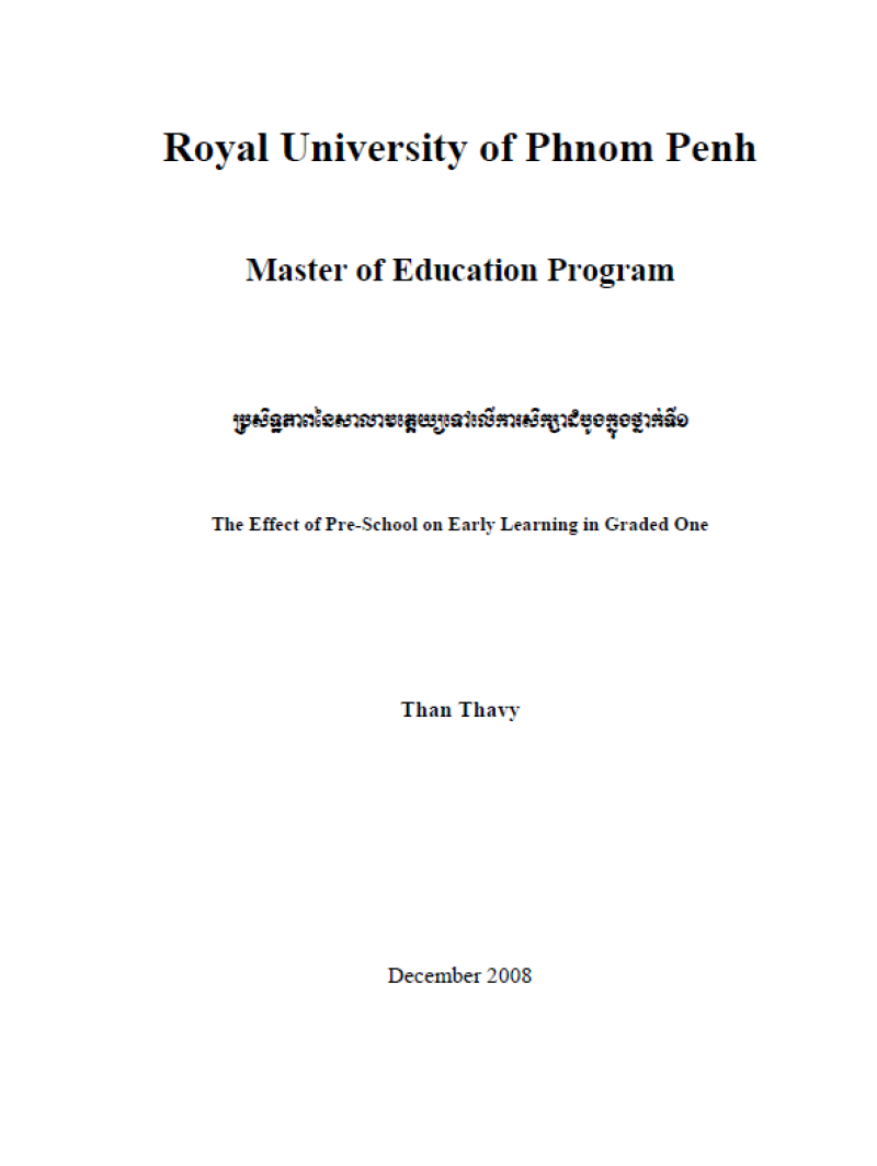 ស្ថានភាពនៃការប្រើប្រាស់គ្រូបង្រៀននៅបឋមសិក្សា និងអនុវិទ្យាល័យក្នុងប្រទេសកម្ពុជា ករណីសិក្សា៖ខេត្តមណ្ឌលគិរី