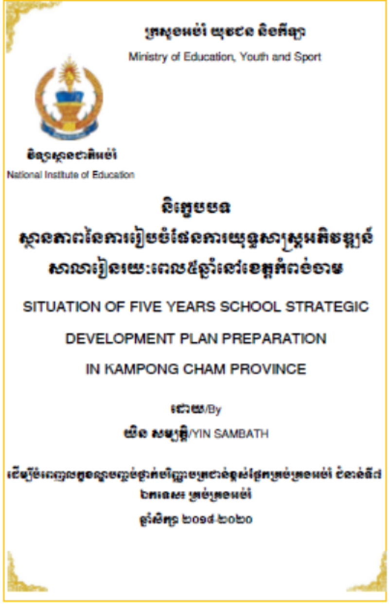 ការរៀបចំ និងការអនុវត្តផៃនការប្រតិបត្តិប្រចាំឆ្នាំរបស់សាលារៀន ក្នុងខេត្តស្វាយរៀង