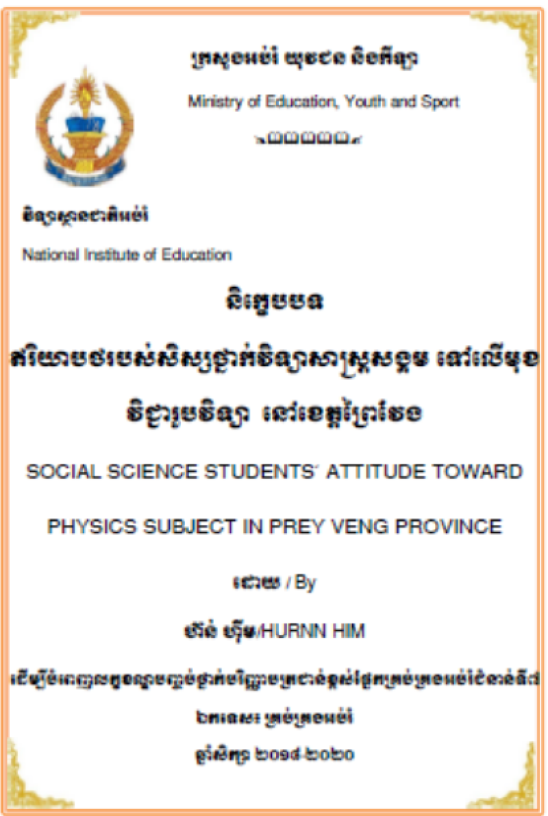 កត្តានៃការជ្រើសរើសមុខវិជ្ជាវិទ្យាសាស្ត្រសង្គមរបស់សិស្សនៅមធ្យមសិក្សាទុតិយភូមិ ក្នុងខេត្តស្វាយរៀង