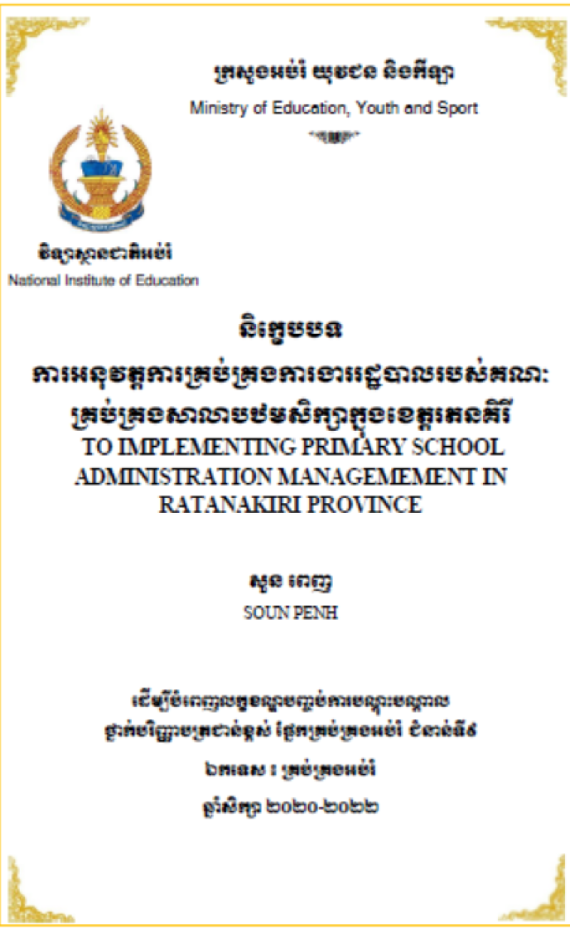 See Moreអាកប្បកិរិយា និងសមត្ថភាពគ្រូបង្រៀនចំពោះការប្រើប្រាស់បច្ចេកវិទ្យាព័ត៍មាន និងសារគមនាគមន៌(ICT)នៅសាលាមធ្យមសិក្សាធនធានក្នុងខេត្តតាកែវ
