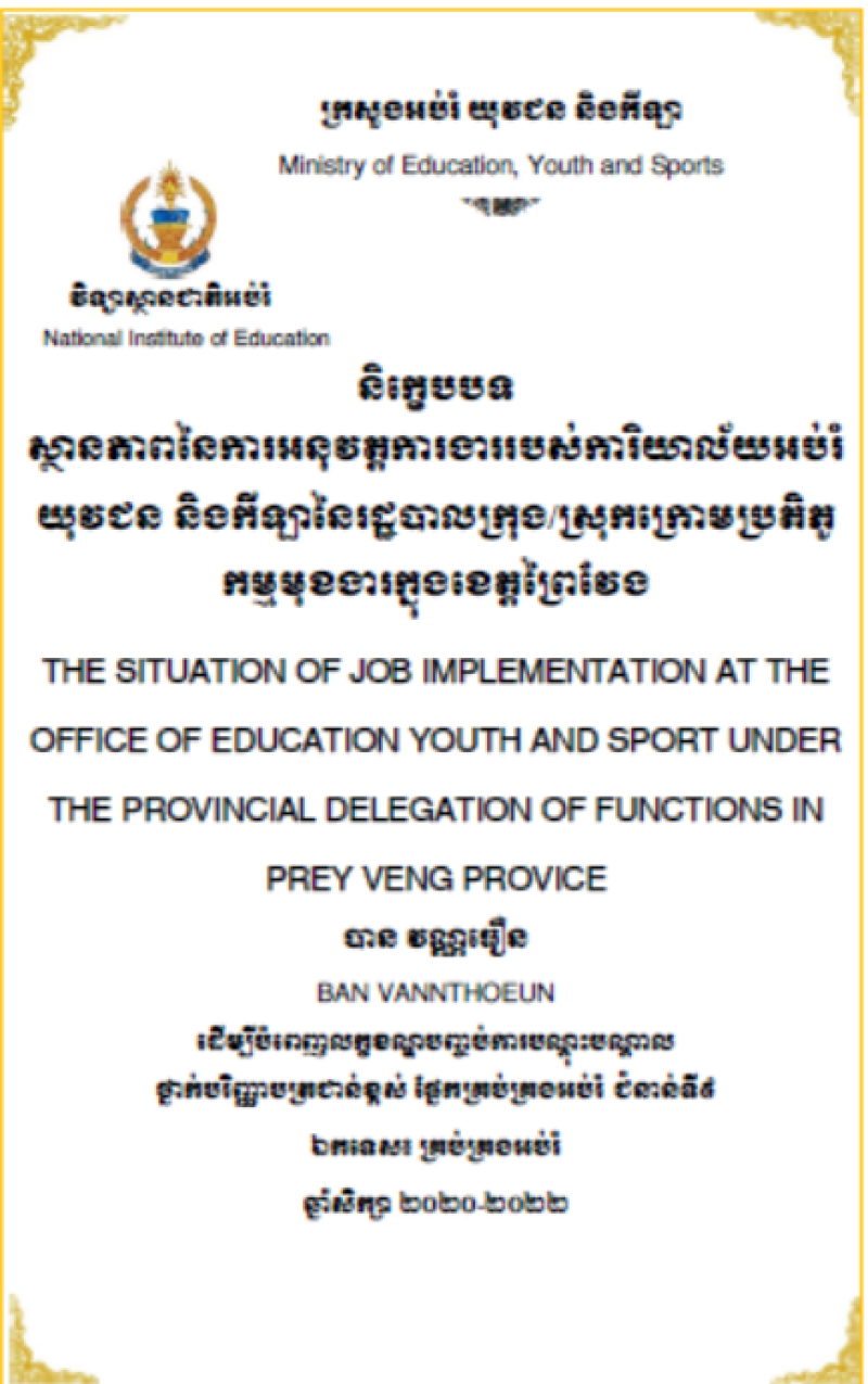 ឧត្តមានុវត្តនៃការដឹកនាំនិងគ្រប់គ្រងរបស់នាយកសាលាវេស្ទើនអន្តរជាតិ" ករណីសិក្សា៖សាលាវេស្ទើនអន្តរជាតិសាខា ស្ទេឌៀម"