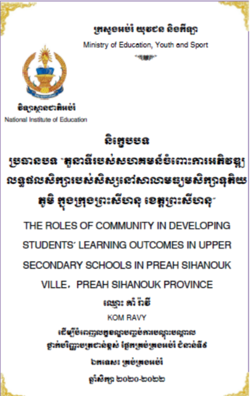 ការសិក្សាពីមុខសញ្ញាចំណាយការសិក្សារបស់សិស្សកម្រិតមធ្យមសិក្សាបឋមភូមិក្នុងខេត្តកំពង់ស្ពឺ