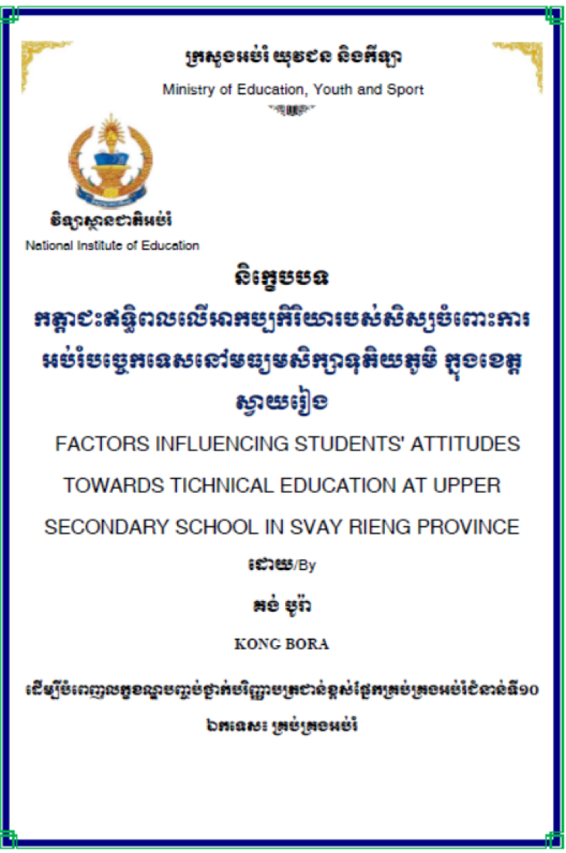 កត្តាដែលប៉ះពាល់ដល់ប្រសិទ្ធភាពការរៀនគណិតវិទ្យារបស់មធ្យមសិក្សាបឋមភូមិ(ករណី៖ខេត្តស្វាយរៀង)