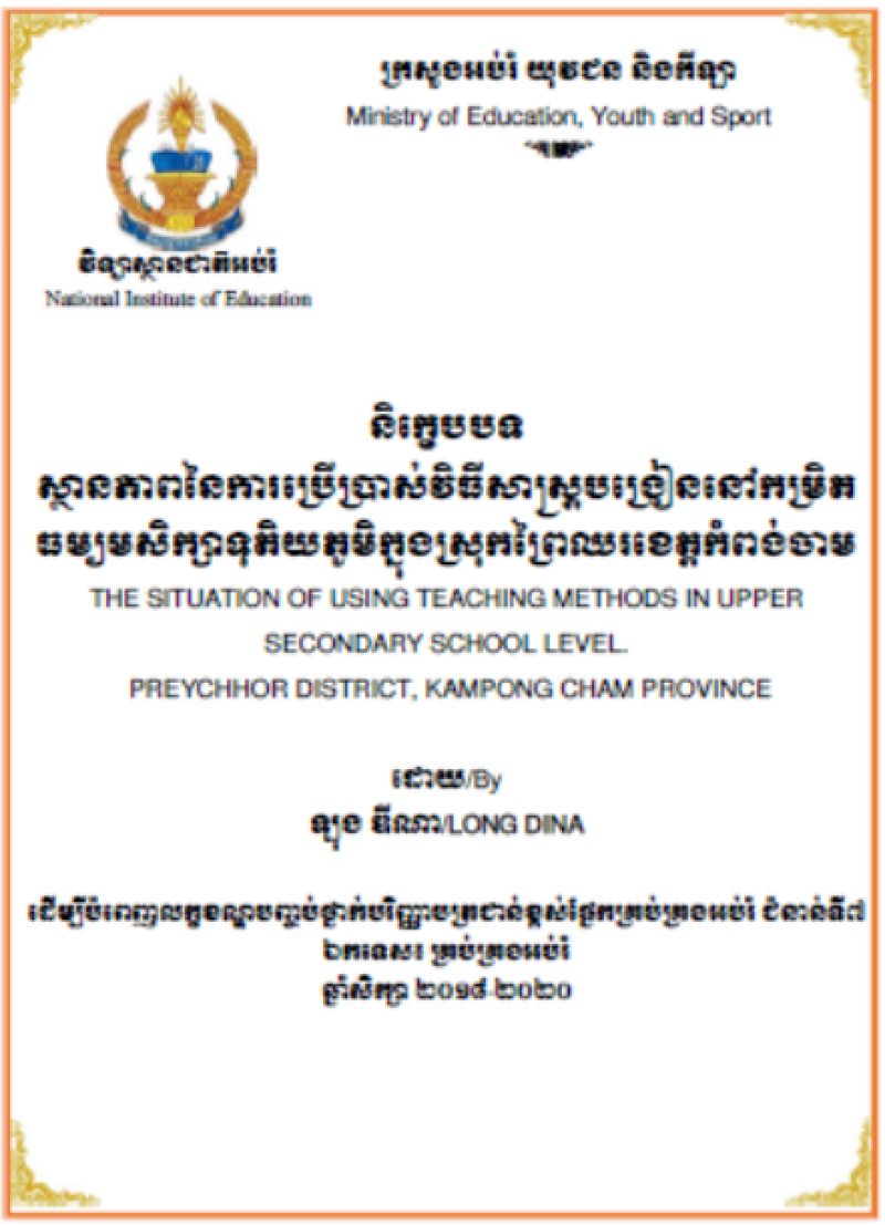 ទស្សនៈរបស់គរុនិស្សិត គ្រូឧទ្ទេស និងនាយក អំពីប្រសិទ្ធភាពក្នុងការអនុវត្តន៍ក្រមសីលធម៌វិជ្ជាជីវៈគ្រូបង្រៀន៖ ករណីសិក្សានៅវិទ្យាស្ថានគរុកោសល្យរាជធានីភ្នំពេញ