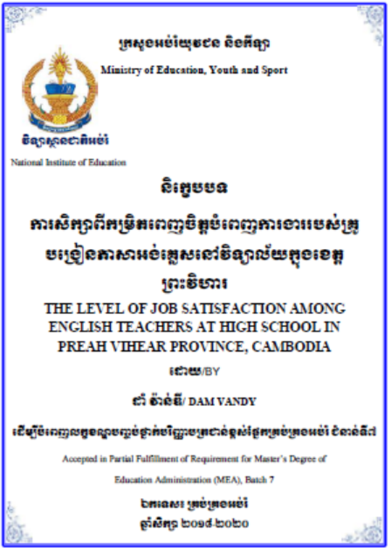 See Moreការអនុវត្តស្តង់ដាវិជ្ជាជីវៈគ្រូបង្រៀននៅសាលាមធ្យមសិក្សាបឋមសិក្សាក្នុងតាកែវ