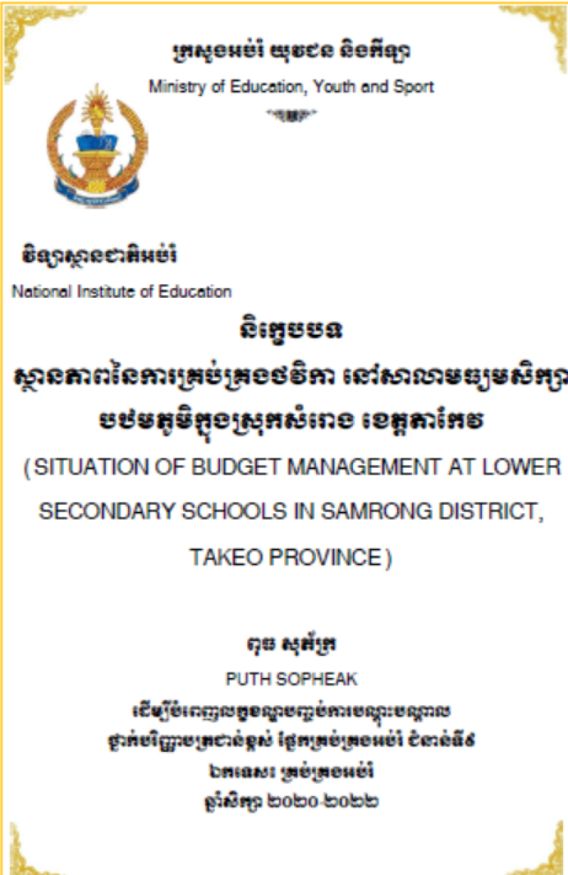 ការសិក្សាពីមុខសញ្ញាចំណាយការសិក្សារបស់សិស្សកម្រិតមធ្យមសិក្សាបឋមភូមិក្នុងខេត្តកំពង់ស្ពឺ