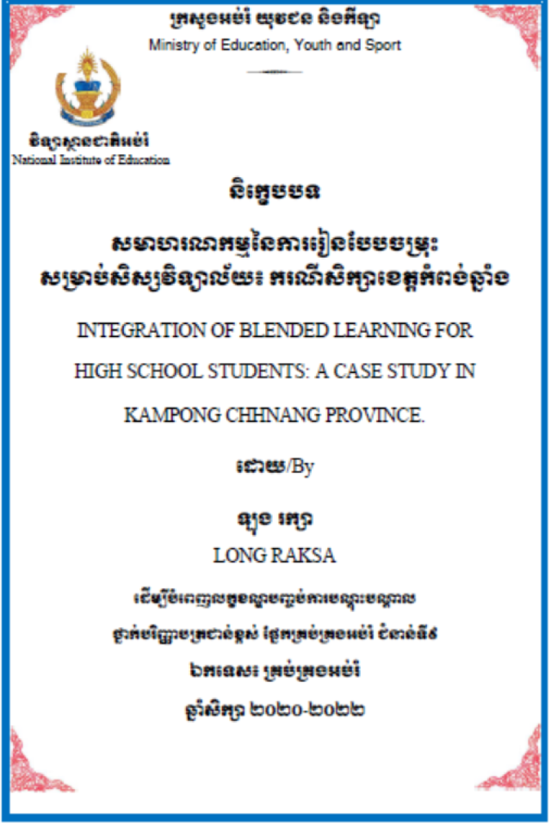 ទស្សនៈយល់ឃើញរបស់គ្រូបង្រៀនចំពោះកត្តាជះឥទ្ធិពលដល់សិស្សងាយរងគ្រោះក្នុងការសិក្សា និងដំណោះស្រាយ៖ ករណីសិក្សាលើគ្រូបង្រៀន និងសិស្សងាយរងគ្រោះ ថ្នាក់ទី៩ នៅវិទ្យាល័យក្រែក ស្រុកពញាក្រែក ខេត្តត្បូងឃ្មុំ