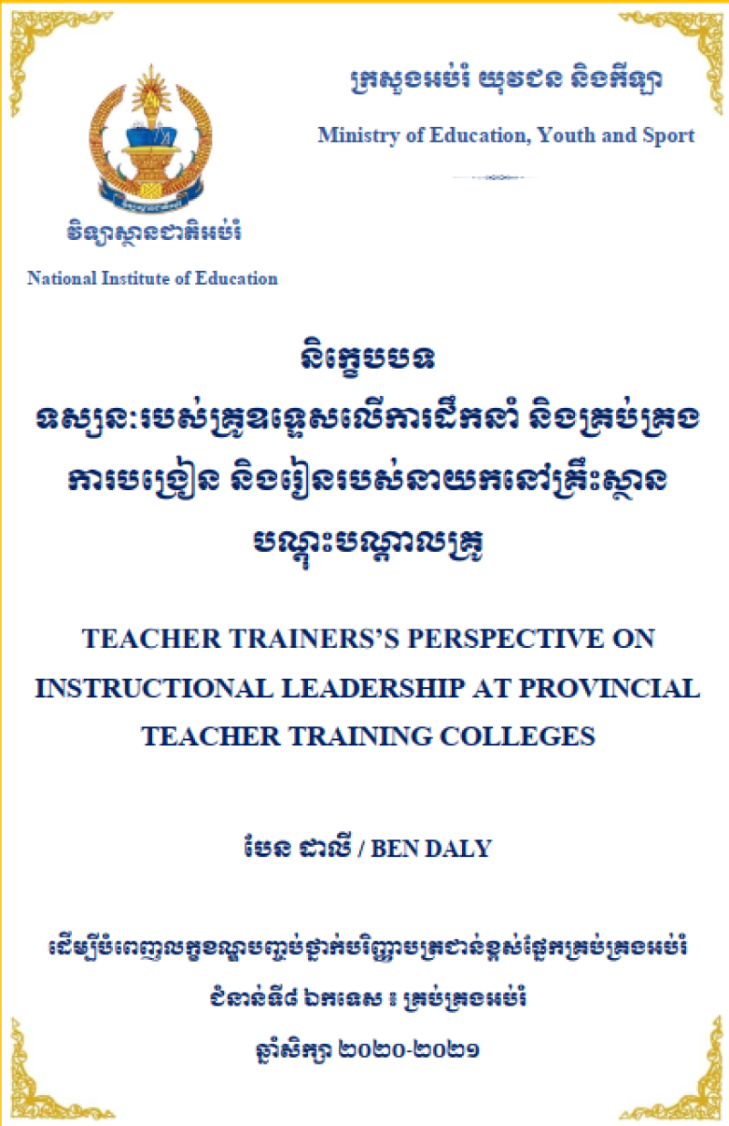 ឧត្តមានុវត្តនៃការដឹកនាំនិងគ្រប់គ្រងរបស់នាយកសាលាវេស្ទើនអន្តរជាតិ" ករណីសិក្សា៖សាលាវេស្ទើនអន្តរជាតិសាខា ស្ទេឌៀម"