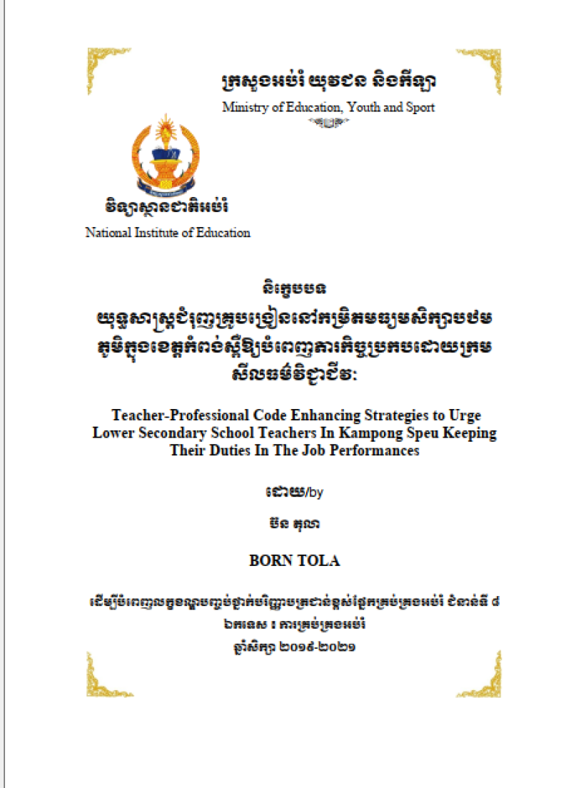តួនាទីរបស់សហគមន៍ចំពោះការអភិវឌ្ឍលទ្ធផលសិក្សារបស់សិស្សនៅសាលាមធ្យមសិក្សាទុតិយភូមិ ក្នុងក្រុងព្រះសីហនុ ខេត្តព្រះសីហនុ