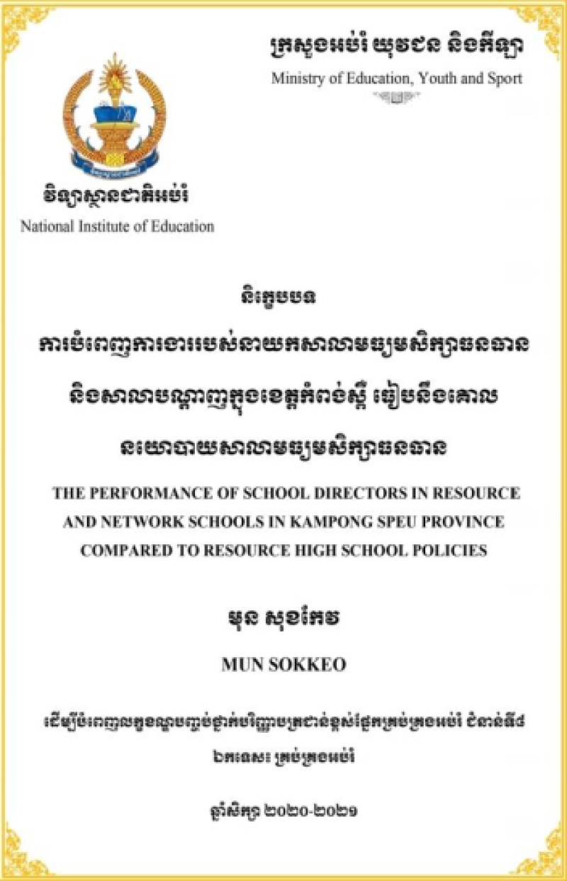 ស្ថានភាពនៃការដឹកនាំ និងគ្រប់គ្រងនៅសាលាមតេយ្យសិក្សាធនធានក្នុងខេត្តស្វាយរៀង