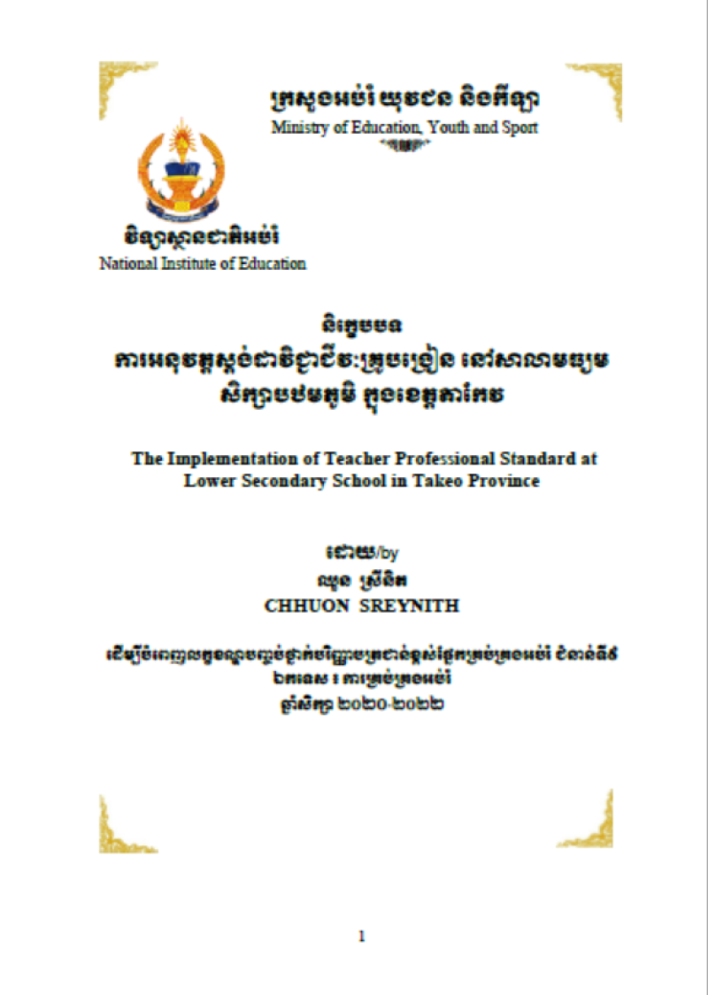 អាកប្បកិរិយា និងសមត្ថភាពគ្រូបង្រៀនចំពោះការប្រើប្រាស់បច្ចេកវិទ្យាព័ត៍មាន និងសារគមនាគមន៌(ICT)នៅសាលាមធ្យមសិក្សាធនធានក្នុងខេត្តតាកែវ