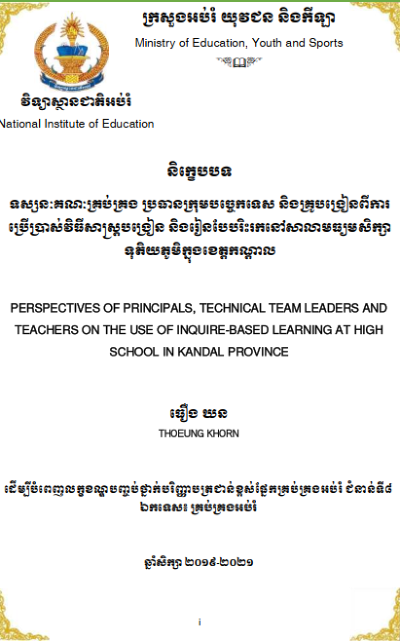 ស្ថានភាពនៃការប្រើប្រាស់វិធីសាស្រ្តបង្រៀនភាសាអង់គ្លេសនៅមធ្យមសិក្សាបឋមភូមិ ករណីសិក្សា៖ រាជធានីភ្នំពេញ
